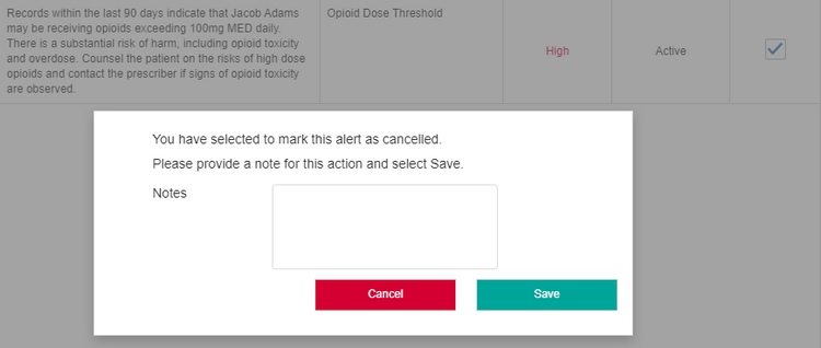 - Select alerts from the Alert History grid, then Cancel.