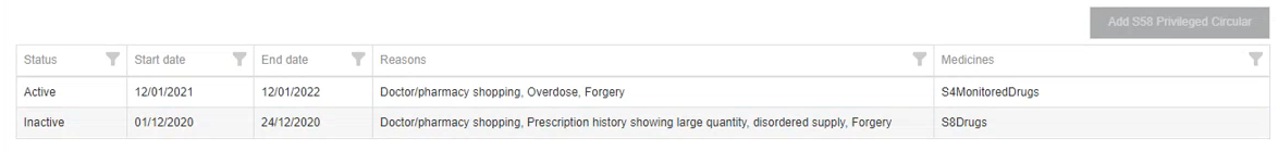 2. From Patient Search Results, open the required regulatory profile or linked profile.