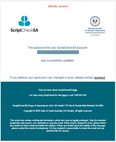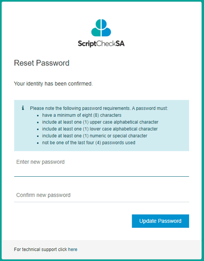 Your account is updated with your new password, and you can now log in to ScriptCheckSA.